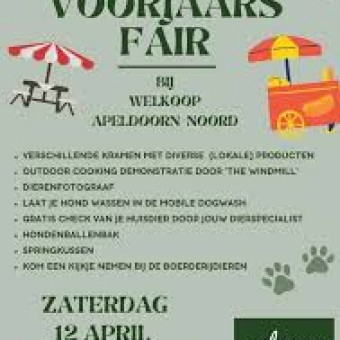 12 april is er een voorjaarsfair bij Welkoop in Apeldoorn Noord van 10:11 tot 17:00 uur. Er is van alles te doen o.a.: verschillende kramen, outdoor cooking demonstratie, dierenfotograaf en veel meer. Lokatie: Laan van de Dierenriem 54 in Apeldoorn. Meer info: uitinapeldoorn.nl/evenement/voorjaarsfair-bij-welkoop-apeldoorn-noord.